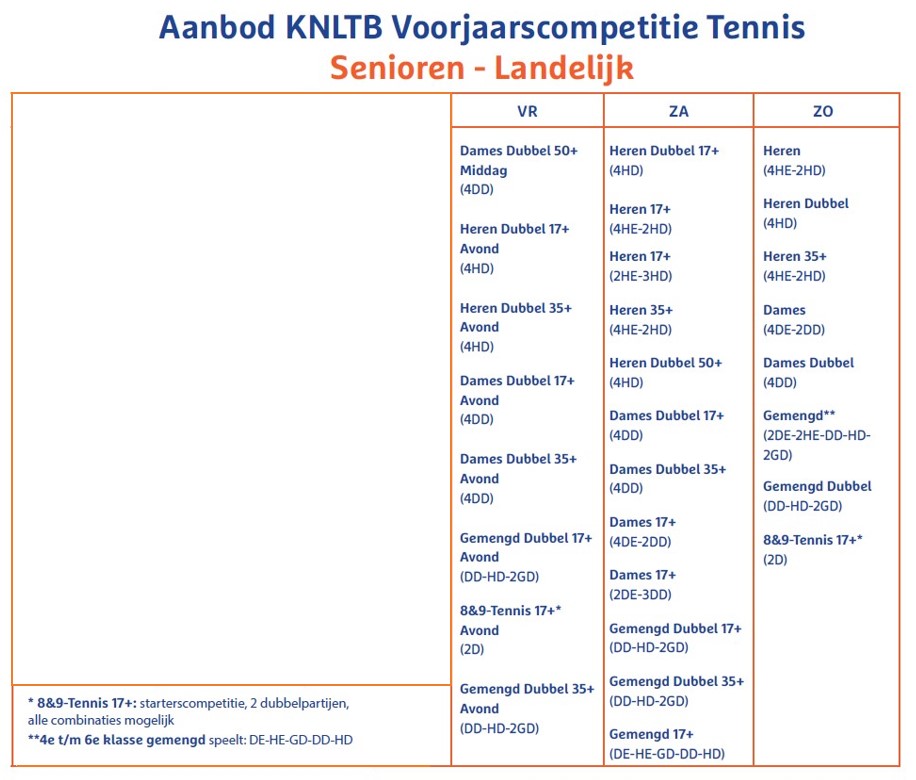 - Dag (vrijdagavond, zaterdag of zondag) en competitie soort