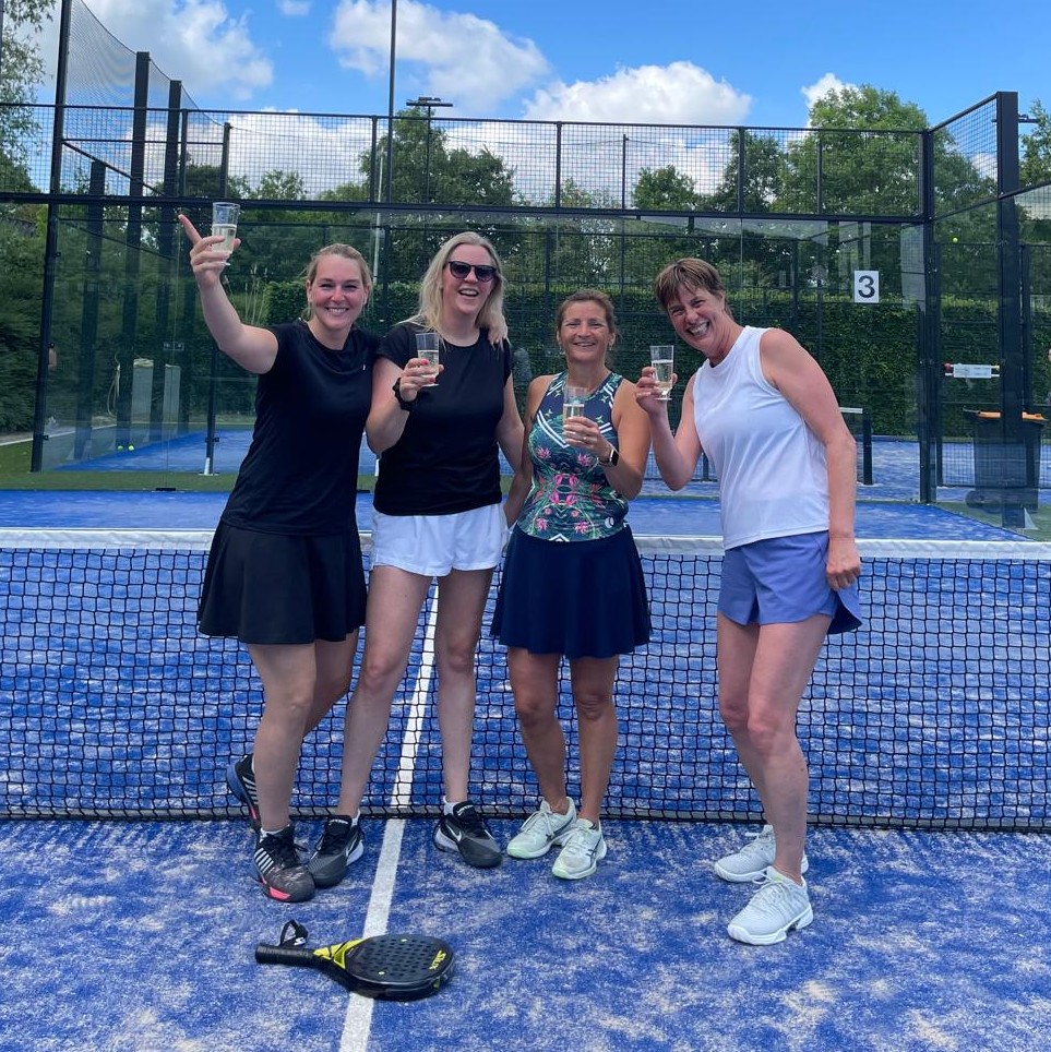 Waar ze eerst nog bijna alles verloren toen ze net begonnen met padel, zijn ze nu een paar seizoenen later overtuigend kampioen geworden. Ingrid, Sacha, Else, Daisy en Marieke wonnen drie rondes, speelden er twee gelijk en verloren er geen één. Een groei waar je u tegen zegt – en die werd natuurlijk afgesloten met een vreugdedansje en een welverdiende toost. Op naar het volgende seizoen!